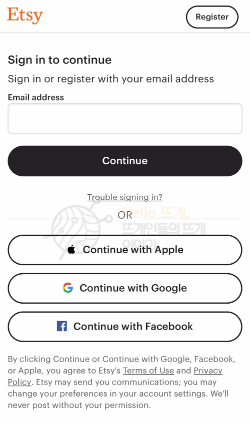 이번 포스팅에서는 Etsy(엣시) 사이트에 가입하는 방법에 대해서 안내해드겠습니다.