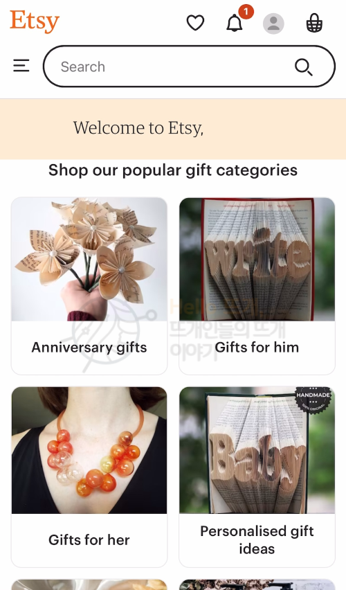Etsy에서 여러분들이 찾아보고 싶은 카테고리나 작품들을 발견해 보시고 좋은 작품 있으면 추천해 주세요.